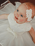 Un delicado cintillo q posee un elástico especial tan suave q su bebe ni lo sentirá. Presente en tamaño desde recién nacido lo puede encontrar en 4 colores: blanco, ivory, rojo y rosa claro. Perfecto para acompañar el vestido de Bautizo. Sirve para 0-18 meses.
