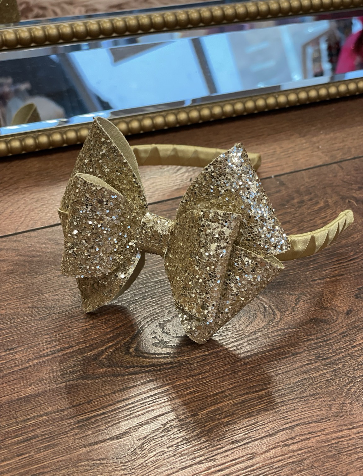Cintillo dorado perfecto para las fiesta y vestidos con brillos. Apto desde 12 meses hasta adulto.
