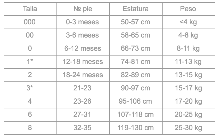 *Talla disponible solamente en artículos 100% algodón.